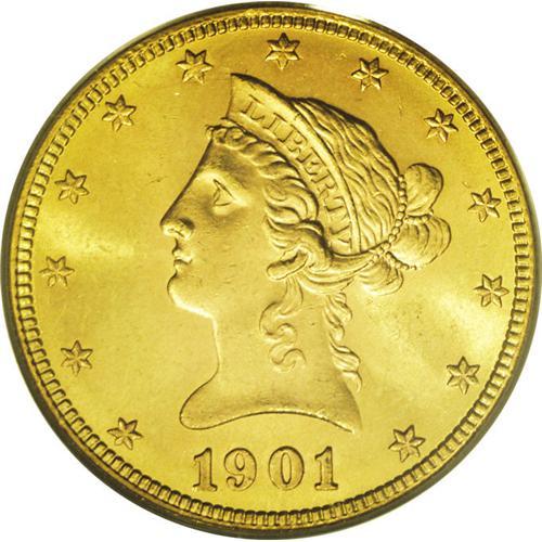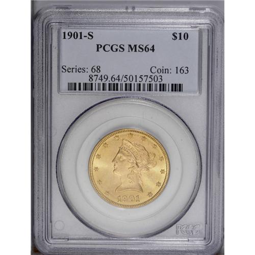 <B>1901-S<$10> MS64 PCGS.</B></I> The obverse of this well struck available date eagle is beautifully preserved. A couple of moderate contact marks are found on the lower reverse that serve to limit the grade.