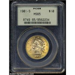 <table><tr><td><TABLE cellSpacing=0 cellPadding=0 width="100%" bgColor=#000000 border=0><TBODY> <TR><TD width="100%"><TABLE cellSpacing=1 cellPadding=3 width="100%" border=0><TBODY><TR><TD width="100%" bgColor=#79735c><FONT face=arial color=#ffffff size=3><B>Description</B> </FONT></TD></TR><TR><TD width="100%" bgColor=#ffffff><FONT face=arial size=2><B>1901-S $10 MS65 PCGS.</B></I> Both sides are radiant in appearance with a rich endowment of swirling mint luster. Medium intensity yellow-gold color is seen throughout, as is bold, if not sharp striking detail. The number of abrasions is expectantly minimal for the assigned grade, and modest brightness in the fields further enhances the already memorable eye appeal. </FONT></TD></TR></TBODY></TABLE></TD></TR></TBODY></TABLE><BR><A name=PricesRealized></A><TABLE cellSpacing=0 cellPadding=0 width="100%" bgColor=#000000 border=0><TBODY><TR><TD width="100%"><TABLE cellSpacing=1 cellPadding=3 width="100%" border=0><TBODY><TR><TD width="100%" bgColor=#79735c><A name=PR><FONT face=arial color=#ffffff size=3><B>Previous Prices from Heritage Auctions</B> </FONT></A></TD></TR><TR><TD bgColor=#f6f6ed><TABLE cellSpacing=0 cellPadding=0 width="100%" border=1><TBODY><TR><TD align=middle width="33%"><B>Date</B></TD><TD align=middle width="33%"><B>Service</B></TD><TD align=middle width="33%"><B>Price</B></TD></TR><TR bgColor=whitesmoke><TD width="33%"><B>09/20/2003</B></TD><TD width="33%">PCGS</TD><TD width="33%">$3,680.00</TD></TR><TR bgColor=whitesmoke><TD width="33%"><B>05/31/2003</B></TD><TD width="33%">NGC</TD><TD width="33%">$2,300.00</TD></TR><TR bgColor=whitesmoke><TD width="33%"><B>05/03/2003</B></TD><TD width="33%">NGC</TD><TD width="33%">$2,185.00</TD></TR><TR bgColor=whitesmoke><TD width="33%"><B>09/28/2002</B></TD><TD width="33%">PCGS</TD><TD width="33%">$2,645.00</TD></TR><TR bgColor=whitesmoke><TD width="33%"><B>02/23/2002</B></TD><TD width="33%">PCGS</TD><TD width="33%">$2,645.00</TD></TR><TR bgColor=whitesmoke><TD width="33%"><B>08/08/2001</B></TD><TD width="33%">NGC</TD><TD width="33%">$1,610.00</TD></TR><TR bgColor=whitesmoke><TD width="33%"><B>10/06/2000</B></TD><TD width="33%">PCGS</TD><TD width="33%">$1,840.00</TD></TR><TR bgColor=whitesmoke><TD width="33%"><B>10/06/2000</B></TD><TD width="33%">NGC</TD><TD width="33%">$1,696.25</TD></TR><TR bgColor=whitesmoke><TD width="33%"><B>10/06/2000</B></TD><TD width="33%">PCGS</TD><TD width="33%">$1,725.00</TD></TR><TR bgColor=whitesmoke><TD width="33%"><B>10/06/2000</B></TD><TD width="33%">NGC</TD><TD width="33%">$1,696.25</TD></TR><TR bgColor=whitesmoke><TD width="33%"><B>10/06/2000</B></TD><TD width="33%">NGC</TD><TD width="33%">$1,696.25</TD></TR><TR bgColor=whitesmoke><TD width="33%"><B>06/10/2000</B></TD><TD width="33%">PCGS</TD><TD width="33%">$2,415.00</TD></TR><TR bgColor=whitesmoke><TD width="33%"><B>05/05/2000</B></TD><TD width="33%">PCGS</TD><TD width="33%">$3,335.00</TD></TR><TR bgColor=whitesmoke><TD width="33%"><B>03/02/2000</B></TD><TD width="33%">NGC</TD><TD width="33%">$2,098.75</TD></TR><TR bgColor=whitesmoke><TD width="33%"><B>02/11/2000</B></TD><TD width="33%">NGC</TD><TD width="33%">$2,012.50</TD></TR><TR bgColor=whitesmoke><TD width="33%"><B>02/12/2000</B></TD><TD width="33%">NGC</TD><TD width="33%">$2,070.00</TD></TR><TR bgColor=whitesmoke><TD width="33%"><B>01/07/2000</B></TD><TD width="33%">NGC</TD><TD width="33%">$2,070.00</TD></TR><TR bgColor=whitesmoke><TD width="33%"><B>01/07/2000</B></TD><TD width="33%">PCGS</TD><TD width="33%">$2,357.50</TD></TR><TR bgColor=whitesmoke><TD width="33%"><B>11/18/1999</B></TD><TD width="33%">PCGS</TD><TD width="33%">$2,472.50</TD></TR><TR bgColor=whitesmoke><TD width="33%"><B>11/18/1999</B></TD><TD width="33%">NGC</TD><TD width="33%">$2,300.00</TD></TR><TR bgColor=whitesmoke><TD width="33%"><B>03/13/1999</B></TD><TD width="33%">PCGS</TD><TD width="33%">$3,622.50</TD></TR><TR bgColor=whitesmoke><TD width="33%"><B>01/08/1999</B></TD><TD width="33%">NGC</TD><TD width="33%">$3,105.00</TD></TR><TR bgColor=whitesmoke><TD width="33%"><B>09/26/1998</B></TD><TD width="33%">PCGS</TD><TD width="33%">$4,025.00</TD></TR><TR bgColor=whitesmoke><TD width="33%"><B>09/26/1998</B></TD><TD width="33%">PCGS</TD><TD width="33%">$7,130.00</TD></TR><TR bgColor=whitesmoke><TD width="33%"><B>09/26/1998</B></TD><TD width="33%">NGC</TD><TD width="33%">$2,990.00</TD></TR><TR bgColor=whitesmoke><TD width="33%"><B>09/26/1998</B></TD><TD width="33%">PCGS</TD><TD width="33%">$4,370.00</TD></TR><TR bgColor=whitesmoke><TD width="33%"><B>09/26/1998</B></TD><TD width="33%">PCGS</TD><TD width="33%">$5,175.00</TD></TR><TR bgColor=whitesmoke><TD width="33%"><B>09/26/1998</B></TD><TD width="33%">PCGS</TD><TD width="33%">$5,290.00</TD></TR><TR bgColor=whitesmoke><TD width="33%"><B>01/11/1997</B></TD><TD width="33%">NGC</TD><TD width="33%">$3,680.00</TD></TR><TR bgColor=whitesmoke><TD width="33%"><B>08/16/1995</B></TD><TD width="33%">NGC</TD><TD width="33%">$2,860.00</TD></TR><TR bgColor=whitesmoke><TD width="33%"><B>10/22/1993</B></TD><TD width="33%">PCGS</TD><TD width="33%">$3,960.00</TD></TR><TR bgColor=whitesmoke><TD width="33%"><B>03/01/2001</B></TD><TD width="33%">NGC</TD><TD width="33%">$1,725.00</TD></TR><TR bgColor=whitesmoke><TD width="33%"><B>08/09/2000</B></TD><TD width="33%">NGC</TD><TD width="33%">$1,495.00</TD></TR><TR bgColor=whitesmoke><TD width="33%"><B>03/01/2001</B></TD><TD width="33%">PCGS</TD><TD width="33%">$2,271.00</TD></TR><TR bgColor=whitesmoke><TD width="33%"><B>08/09/2000</B></TD><TD width="33%">NGC</TD><TD width="33%">$1,840.00</TD></TR><TR bgColor=whitesmoke><TD width="33%"><B>10/02/2000</B></TD><TD width="33%">NGC</TD><TD width="33%">$1,725.00</TD></TR><TR bgColor=whitesmoke><TD width="33%"><B>06/01/2001</B></TD><TD width="33%">PCGS</TD><TD width="33%">$2,501.00</TD></TR><TR bgColor=whitesmoke><TD width="33%"><B>02/01/2000</B></TD><TD width="33%">NGC</TD><TD width="33%">$2,300.00</TD></TR><TR bgColor=whitesmoke><TD width="33%"><B>02/01/2000<