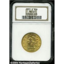 <table><tbody><tr><td><table> <TR><TD width="100%"><TABLE cellSpacing=1 cellPadding=3 width="100%" border=0><TBODY><TR><TD width="100%" bgColor=#79735c><FONT face=arial color=#ffffff size=3><B>Description</B> </FONT></TD></TR><TR><TD width="100%" bgColor=#ffffff><FONT face=arial size=2><B>1901-S $10 MS67 NGC.</B></I> Breen-7075. The base of the first 1 in the date is repunched, with less obvious recutting evident on the base of the 9 and the top of the 0. The 1901-S has long been recognized as the most available issue in the Liberty Eagle series in Gem condition. However, the exposed fields and the soft gold alloy combine with indifferent storage to severely limit the number of Superb Gems. This highly lustrous piece has a needle-sharp strike and magnificently preserved surfaces. Population: 15 in 67, 0 finer (11/03). </FONT></TD></TR></TBODY></TABLE></TD></TR></TBODY></TABLE><BR><A name=PricesRealized></A><TABLE cellSpacing=0 cellPadding=0 width="100%" bgColor=#000000 border=0><TBODY><TR><TD width="100%"><TABLE cellSpacing=1 cellPadding=3 width="100%" border=0><TBODY><TR><TD width="100%" bgColor=#79735c><A name=PR><FONT face=arial color=#ffffff size=3><B>Previous Prices from Heritage Auctions</B> </FONT></A></TD></TR><TR><TD bgColor=#f6f6ed><TABLE cellSpacing=0 cellPadding=0 width="100%" border=1><TBODY><TR><TD align=middle width="33%"><B>Date</B></TD><TD align=middle width="33%"><B>Service</B></TD><TD align=middle width="33%"><B>Price</B></TD></TR><TR bgColor=whitesmoke><TD width="33%"><B>06/01/2000</B></TD><TD width="33%">NGC</TD><TD width="33%">$10,350.00</TD></TR></TBODY></TABLE></TD></TR><TR><TD bgColor=#ffffff><FONT face=arial size=1 ?>PLEASE NOTE: All prices realized reflect the final hammer price PLUS the buyer's premium in auctions that charge a buyer's premium. Each item has a notation at the top of the listing indicating whether that lot included a buyer's premium. Example: A item that sells with a final hammer price of $100 and a 20% buyer's premium will display with a price realized of $120. All information listed is intended to be as accurate as possible, but errors are possible. Please use this guide carefully and inform us of any inaccuracies. </FONT></TD></TR></TBODY></TABLE></TD></TR></TBODY></TABLE><BR><TABLE cellSpacing=0 cellPadding=0 width="100%" bgColor=#000000 border=0><TBODY><TR><TD width="100%"><TABLE cellSpacing=1 cellPadding=3 width="100%" border=0><TBODY><TR><TD width="100%" bgColor=#79735c colSpan=6><FONT face=arial color=#ffffff size=3><B>Price Guide*</B> </FONT></TD></TR><TR bgColor=#f6f6ed><TD align=middle><B>Grade</B> </TD><TD align=middle><B>Coin World<BR>(Trends)</B> </TD><TD align=middle><B>Numismedia<BR>Retail</B> </TD><TD align=middle><B>Numismedia<BR>Wholesale</B> </TD><TD align=middle><B>Coin<BR>Universe</B> </TD><TD align=middle><B>Heritage<BR>Value Index</B> </TD></TR><TR bgColor=#ffffff><TD align=middle>66</TD><TD align=right>---</TD><TD align=right>---</TD><TD align=right>$4,675.00</TD><TD align=right>$8,100.00</TD><TD align=right>$6,178.33</TD></TR><TR style="FONT-WEIGHT: bold" bgColor=#cccfdd><TD align=middle>67</TD><TD align=right>---</TD><TD align=right>---</TD><TD align=right>$14,900.00</TD><TD align=right>---</TD><TD align=right>$14,850.00</TD></TR><TR bgColor=#ffffff><TD align=middle>68</TD><TD align=right>---</TD><TD align=right>---</TD><TD align=right>---</TD><TD align=right>---</TD><TD align=right>---</TD></TR><TR bgColor=#ffffff><TD colSpan=6><FONT size=1>*All information listed is intended to be as accurate as possible, but errors are possible. No item may be returned or refused based on this information which is provided as a service to our customers. You should contact each pricing source directly to determine the accuracy of this information. </FONT></TD></TR></TBODY></TABLE></TD></TR></TBODY></TABLE><BR><TABLE cellSpacing=0 cellPadding=0 width="100%" bgColor=#000000 border=0><TBODY><TR><TD width="100%"><TABLE cellSpacing=1 cellPadding=3 width="100%" border=0><TBODY><TR><TD width="100%" bgColor=#79735c><FONT face=arial color=#ffffff size=3><B>Population Guide</B> </FONT></TD></TR><TR bgColor=#ffffff><TD align=middle><!-- Begin Output of Population Grid--><TABLE cellSpacing=0 cellPadding=0 width="100%" border=0><TBODY><TR><TD vAlign=center><TABLE cellSpacing=0 width="100%" border=1 cellsadding="3"><TBODY><TR><TD vAlign=center><TABLE cellSpacing=0 cellPadding=3 width="100%" border=1><TBODY><TR><TD vAlign=center align=middle bgColor=#f0f1e8 colSpan=2 <CENTER><FONT face=Arial size=2><B>PCGS Pop </B></FONT><CENTER></CENTER></TD><TD vAlign=center align=middle bgColor=#f0f1e8 colSpan=2><CENTER><FONT face=Arial size=2><B>NGC Pop</B></CENTER></FONT></TD></TR><TR><TD vAlign=center><FONT face=Arial size=2>(67)</FONT> </TD><TD vAlign=center align=right><FONT face=Arial size=2>2</FONT> </TD><TD vAlign=center><FONT face=Arial size=2>(67)</FONT> </TD><TD vAlign=center align=right><FONT face=Arial size=2>15</FONT> </TD></TR><TR><TD vAlign=center><FONT face=Arial size=2>(>67)</FONT> </TD><TD vAlign=center align=right><FONT face=Arial size=2>0</FONT> </TD><TD vAlign=center><FONT face=Arial size=2>(>67)</FONT> </TD><TD vAlign=center align=right><FONT face=Arial size=2>0</FONT> </TD></TR></TBODY></TABLE></TD></TR></TBODY></TABLE></TD></TR></TBODY></TABLE><!-- End Output of Population Grid--></TD></TR></TBODY></TABLE></TD></TR></TBODY></TABLE><BR><TABLE cellSpacing=0 cellPadding=0 width="100%" bgColor=#000000 border=0><TBODY><TR> <font color='#000000'><span style='background-color: #FFFFFF'><td bgcolor='#FFFFFE'> Important notice: Heritage usually auctions material at the rate of 200-250 lots per hour. On some occasions eBay Live bid software or the Internet may not be able to keep up with the pace of the auction. We recommend placing a realistic absentee bid now as insurance to avoid disappointment. Occasionally the auctioneer may eliminate or reject an eBay Live bid, and the auctioneer may also reopen a lot after the close of the eBay live biddin