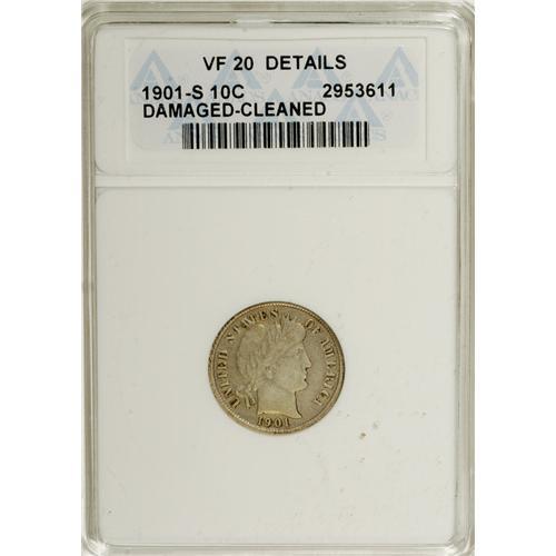 1901-S 10C --Cleaned, Damaged--ANACS. VF20 Details.