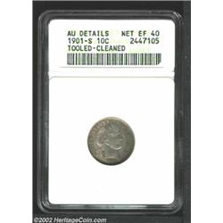 1901-S 10C--Tooled, Cleaned--ANACS. AU Details, Net XF40. The space between the date and UNITED has.