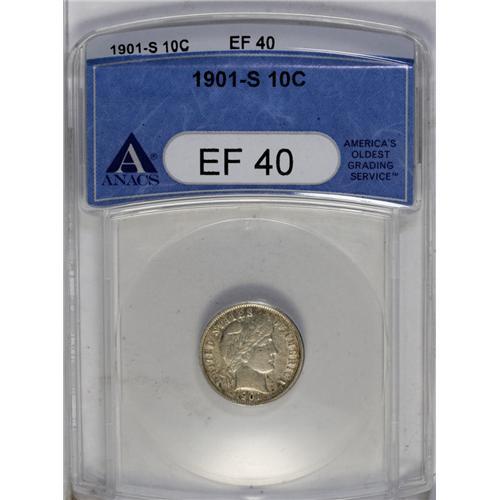 <B>1901-S<10C> XF40 ANACS.</B></I> Modest wear shows over this semi-key example. A smattering of russet patina has collected about the obverse border and there are no singularly mentionable marks. A highly elusive date in this grade, and always a favorite of collectors.