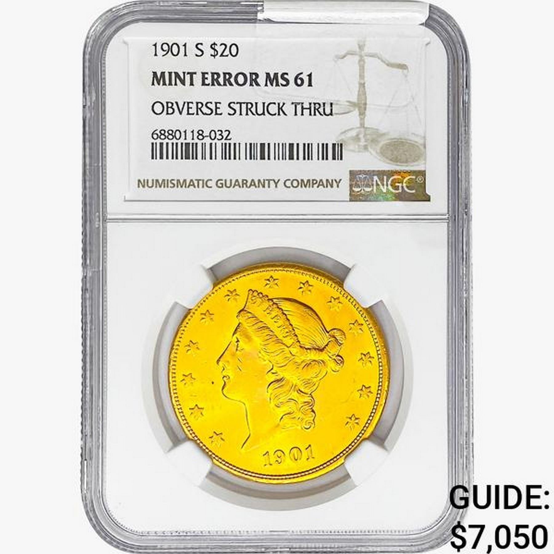 1901-S $20 Gold Double Eagle NGC MS61 Mint Error