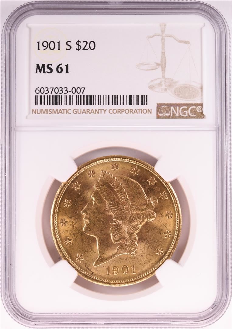 One 1901-S $20 Liberty Head Double Eagle Gold Coin NGC MS61. NGC Certified.
