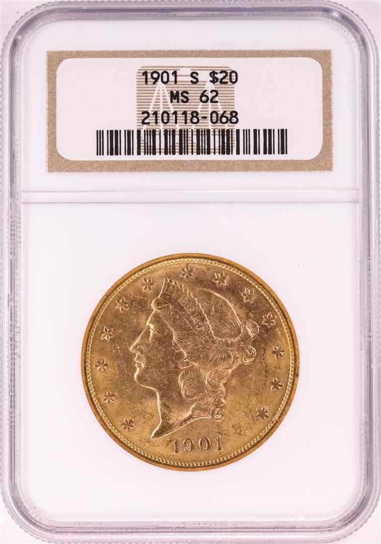 One 1901-S $20 Liberty Head Double Eagle Gold Coin NGC MS62. NGC Certified.