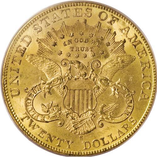 <B>1901-S $20 MS63 PCGS.</B></I> Olive and apricot shades alternate across this lustrous and precisely struck Select double eagle. The reverse is smooth for the grade, and the obverse also has a paucity of noticeable marks. Although nearly 1.6 million pieces were struck, the 1901-S was subject to indifferent bag storage, and PCGS has certified just two pieces above the MS64 grade.<BR><BR><b>Shipping:</b> Coins & Currency (<a target="_blank" href="http://www.heritageauctions.com/common/shipping.php">view shipping information</a>)