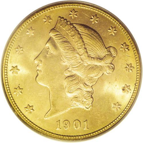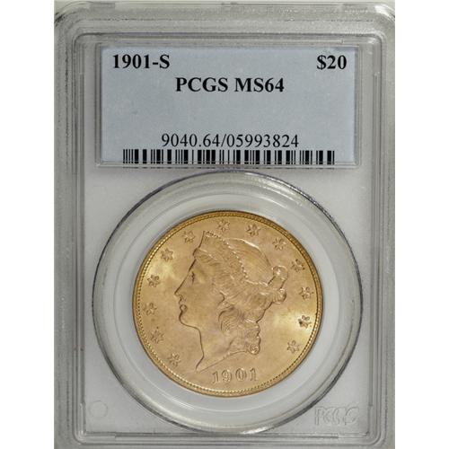1901-S $20 MS64 PCGS. Extremely lustrous, as is charac