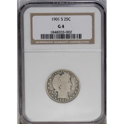 1901-S 25C Good 4 NGC. A clean, problem-free example o