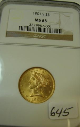 1901-S $5.00 Liberty Gold Coin NGC MS63