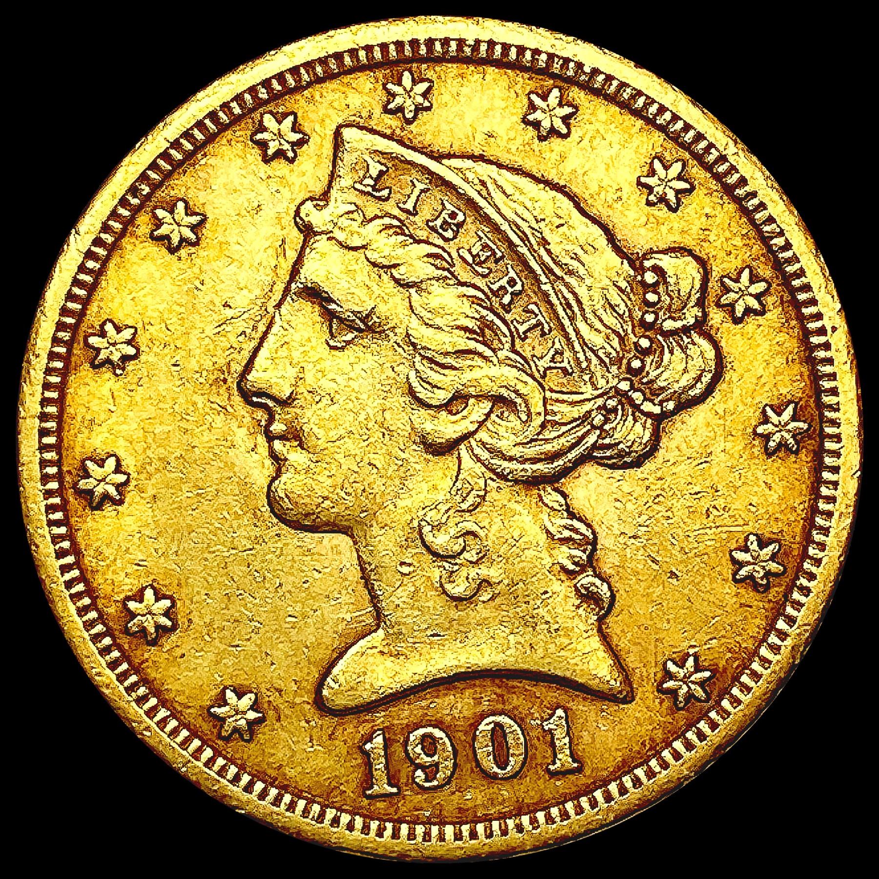 1901-S $5 Gold Half Eagle CLOSELY UNCIRCULATED