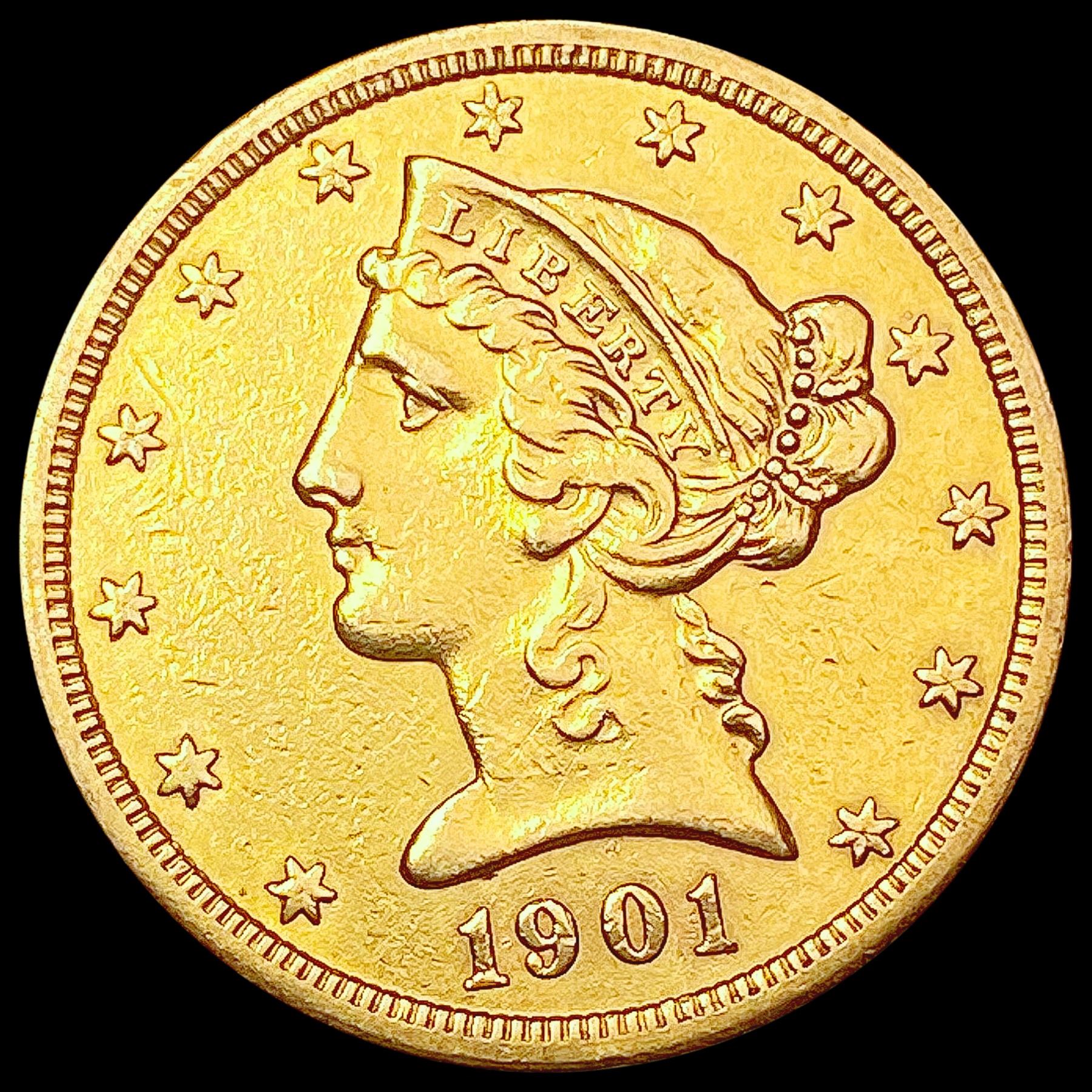 1901-S $5 Gold Half Eagle CLOSELY UNCIRCULATED
