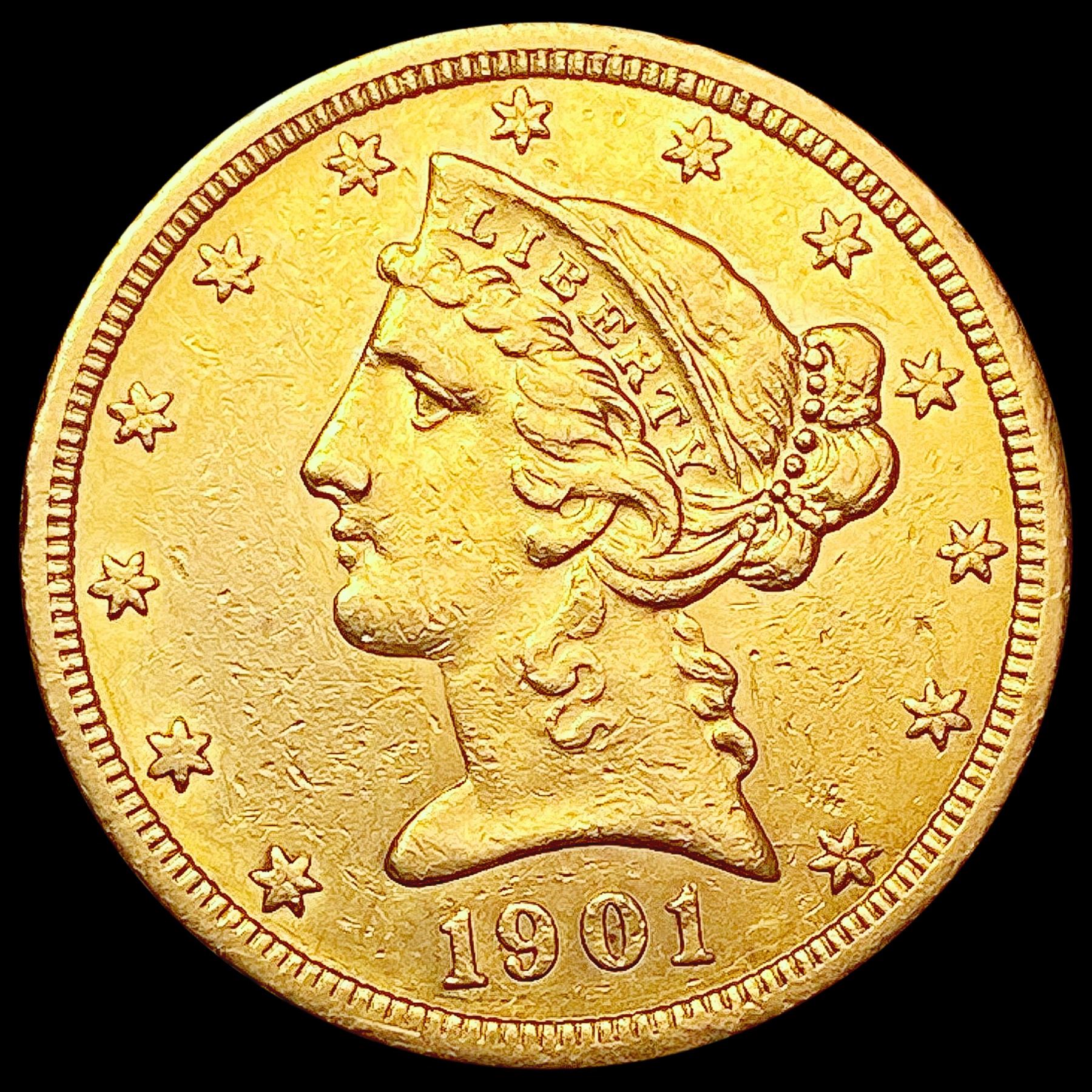 1901 S $5 Gold Half Eagle CLOSELY UNCIRCULATED