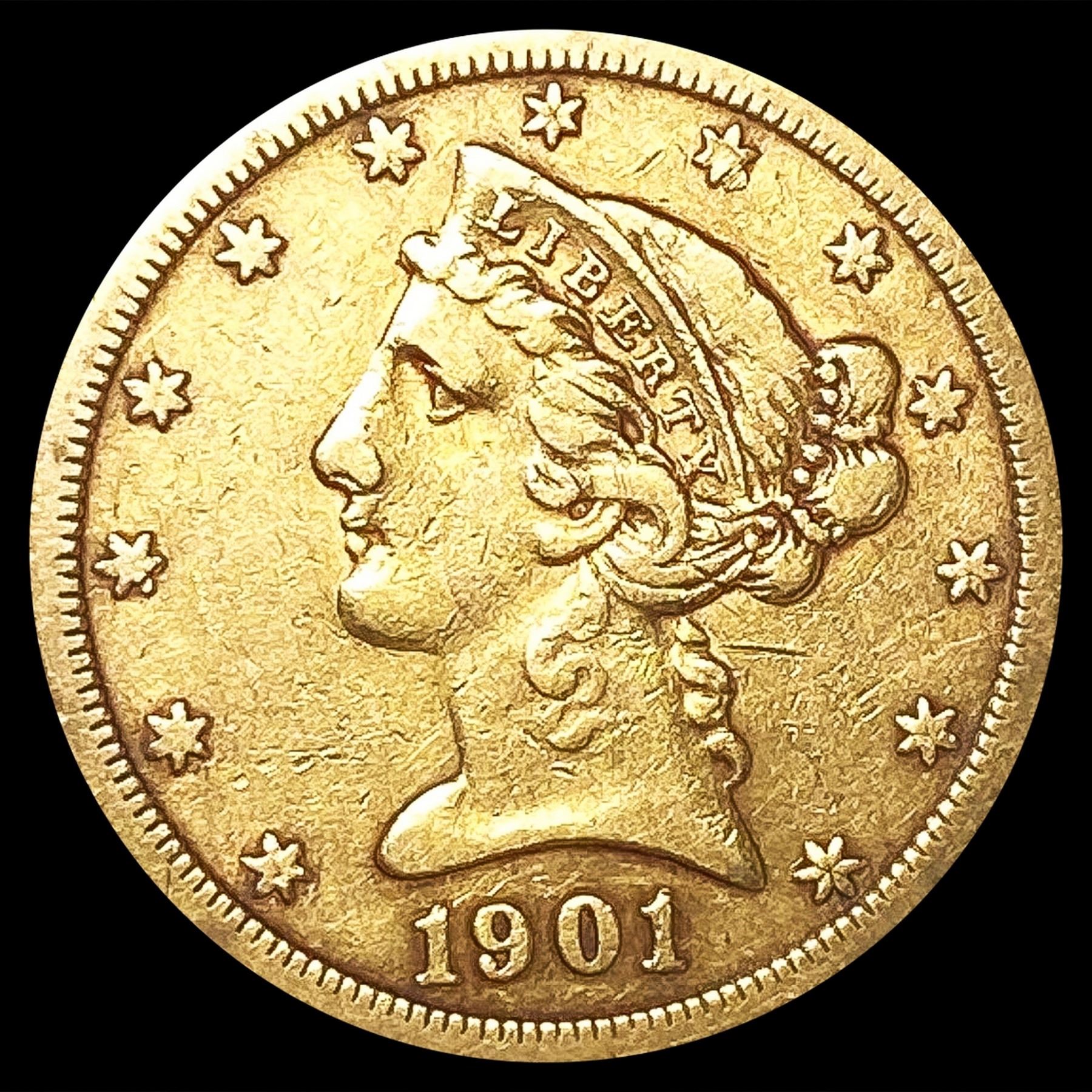 1901-S $5 Gold Half Eagle NICELY CIRCULATED