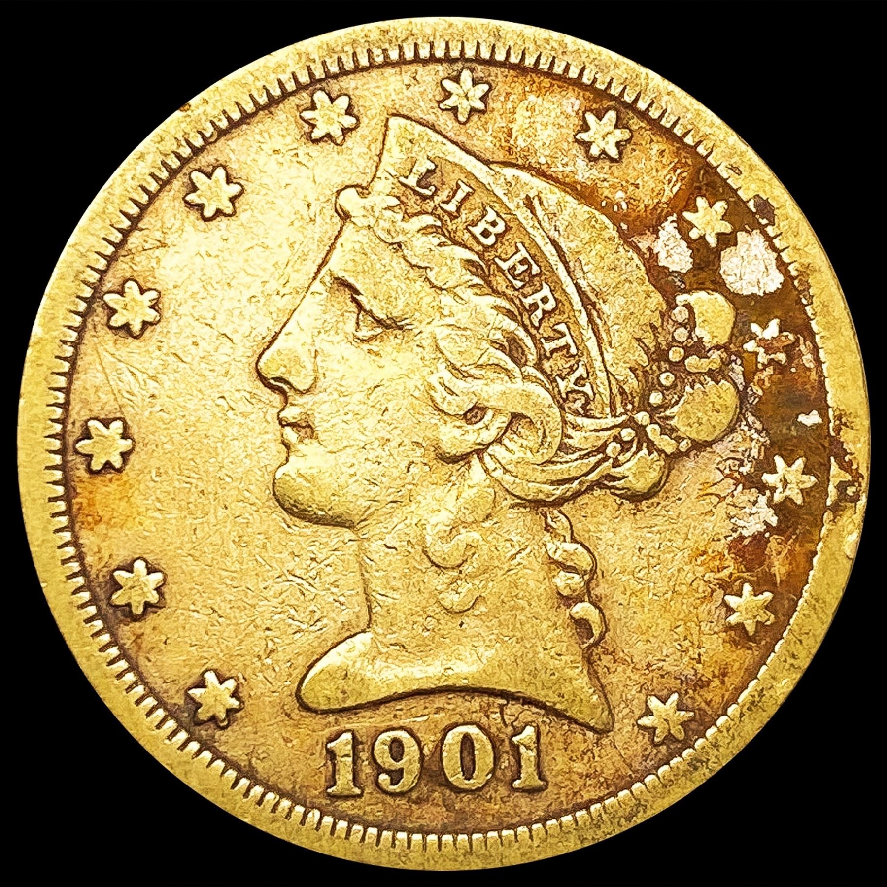 1901-S $5 Gold Half Eagle NICELY CIRCULATED