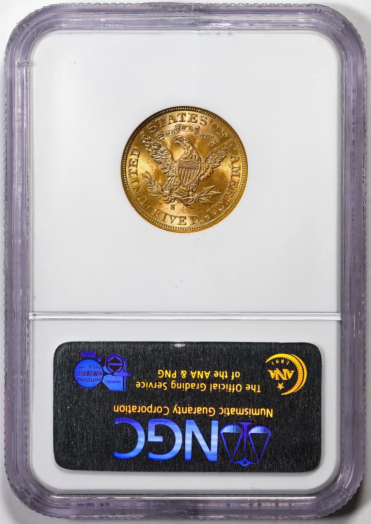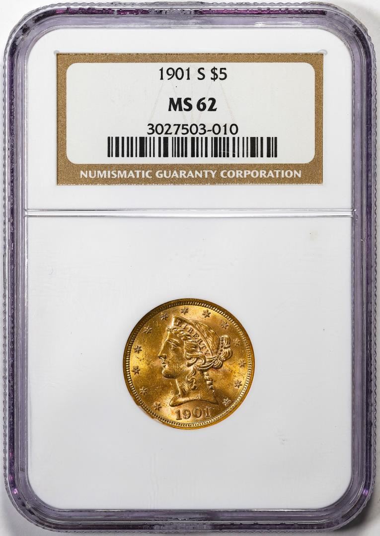 One 1901-S $5 Liberty Head Half Eagle Gold Coin NGC MS62. NGC Certified.