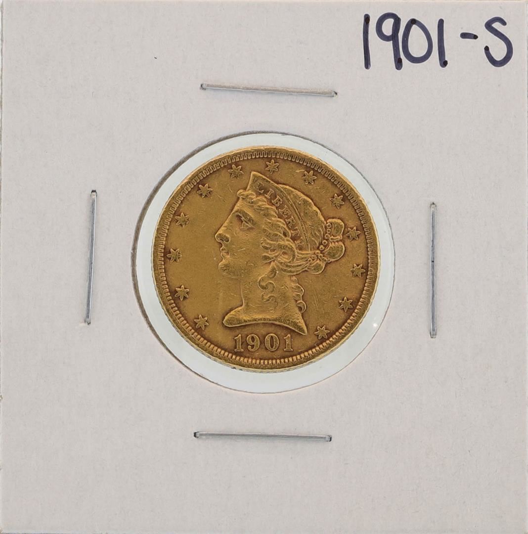 One 1901-S $5 Liberty Head Half Eagle Gold Coin.