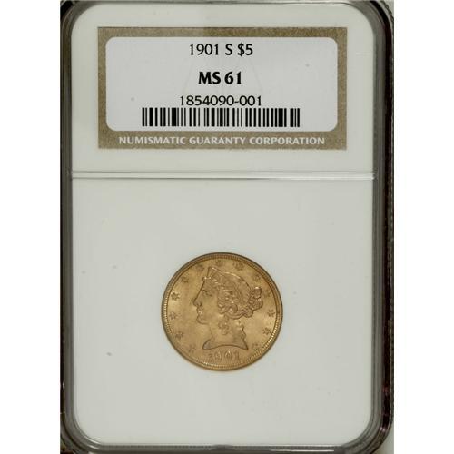 1901-S $5 MS61 NGC. NGC Census: (745/3585). PCGS P