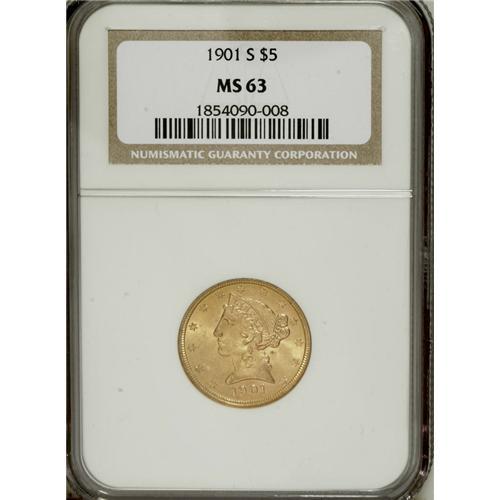 1901-S $5 MS63 NGC. NGC Census: (977/1275). PCGS P