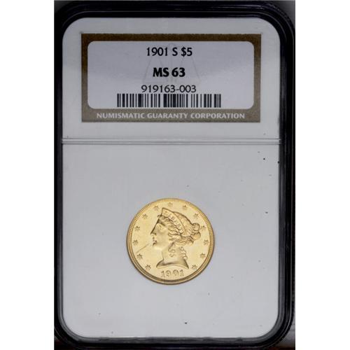 1901-S $5 MS63 NGC. This is a crisply struck, semi-pro