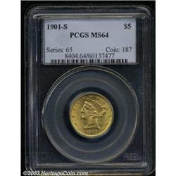 <TABLE cellSpacing=0 cellPadding=0 width="100%" bgColor=#000000 border=0><TBODY><TR><TD width="100%"><TABLE cellSpacing=1 cellPadding=3 width="100%" border=0><TBODY><TR><TD width="100%" bgColor=#79735c><FONT face=arial color=#ffffff size=3><B>Description</B> </FONT></TD></TR><TR><TD width="100%" bgColor=#ffffff><FONT face=arial size=2><B>1901-S $5 MS64 PCGS.</B></I> Well struck with full gleaming mint luster and attractive, even orange-gold color. There are a few wispy blemishes near the obverse center, and one heavier mark near the lower right obverse rim. The reverse seems blemish-free, with a pair of faint luster grazes in the fields. </FONT></TD></TR></TBODY></TABLE></TD></TR></TBODY></TABLE><BR><A name=PricesRealized></A><TABLE cellSpacing=0 cellPadding=0 width="100%" bgColor=#000000 border=0><TBODY><TR><TD width="100%"><TABLE cellSpacing=1 cellPadding=3 width="100%" border=0><TBODY><TR><TD width="100%" bgColor=#79735c><A name=PR><FONT face=arial color=#ffffff size=3><B>Previous Prices from Heritage Auctions</B> </FONT></A></TD></TR><TR><TD bgColor=#f6f6ed><TABLE cellSpacing=0 cellPadding=0 width="100%" border=1><TBODY><TR><TD align=middle width="33%"><B>Date</B></TD><TD align=middle width="33%"><B>Service</B></TD><TD align=middle width="33%"><B>Price</B></TD></TR><TR bgColor=whitesmoke><TD width="33%"><B>04/24/1998</B></TD><TD width="33%">PCGS</TD><TD width="33%">$1,595.00</TD></TR><TR bgColor=whitesmoke><TD width="33%"><B>03/01/1999</B></TD><TD width="33%">PCGS</TD><TD width="33%">$1,323.00</TD></TR><TR bgColor=whitesmoke><TD width="33%"><B>09/01/1999</B></TD><TD width="33%">PCGS</TD><TD width="33%">$1,035.00</TD></TR><TR bgColor=whitesmoke><TD width="33%"><B>08/19/1995</B></TD><TD width="33%">NGC</TD><TD width="33%">$1,430.00</TD></TR><TR bgColor=whitesmoke><TD width="33%"><B>06/03/1998</B></TD><TD width="33%">NGC</TD><TD width="33%">$1,595.00</TD></TR><TR bgColor=whitesmoke><TD width="33%"><B>04/23/1999</B></TD><TD width="33%">NGC</TD><TD width="33%">$1,265.00</TD></TR><TR bgColor=whitesmoke><TD width="33%"><B>09/26/1998</B></TD><TD width="33%">NGC</TD><TD width="33%">$1,322.50</TD></TR><TR bgColor=whitesmoke><TD width="33%"><B>10/07/2001</B></TD><TD width="33%">NGC</TD><TD width="33%">$833.75</TD></TR><TR bgColor=whitesmoke><TD width="33%"><B>10/07/2001</B></TD><TD width="33%">NGC</TD><TD width="33%">$833.75</TD></TR><TR bgColor=whitesmoke><TD width="33%"><B>05/05/2000</B></TD><TD width="33%">NGC</TD><TD width="33%">$1,552.50</TD></TR><TR bgColor=whitesmoke><TD width="33%"><B>02/01/1999</B></TD><TD width="33%">NGC</TD><TD width="33%">$2,070.00</TD></TR><TR bgColor=whitesmoke><TD width="33%"><B>05/01/1991</B></TD><TD width="33%">NGC</TD><TD width="33%">$1,815.00</TD></TR><TR bgColor=whitesmoke><TD width="33%"><B>05/01/2000</B></TD><TD width="33%">PCGS</TD><TD width="33%">$1,700.00</TD></TR><TR bgColor=whitesmoke><TD width="33%"><B>06/01/2001</B></TD><TD width="33%">PCGS</TD><TD width="33%">$805.00</TD></TR><TR bgColor=whitesmoke><TD width="33%"><B>05/02/1997</B></TD><TD width="33%">PCGS</TD><TD width="33%">$1,485.00</TD></TR><TR bgColor=whitesmoke><TD width="33%"><B>10/01/1993</B></TD><TD width="33%">PCGS</TD><TD width="33%">$2,145.00</TD></TR><TR bgColor=whitesmoke><TD width="33%"><B>04/02/1993</B></TD><TD width="33%">PCGS</TD><TD width="33%">$2,530.00</TD></TR><TR bgColor=whitesmoke><TD width="33%"><B>05/06/2000</B></TD><TD width="33%">PCGS</TD><TD width="33%">$833.75</TD></TR><TR bgColor=whitesmoke><TD width="33%"><B>01/07/2000</B></TD><TD width="33%">PCGS</TD><TD width="33%">$897.00</TD></TR><TR bgColor=whitesmoke><TD width="33%"><B>11/01/1996</B></TD><TD width="33%">PCGS</TD><TD width="33%">$1,402.50</TD></TR><TR bgColor=whitesmoke><TD width="33%"><B>11/19/1999</B></TD><TD width="33%">PCGS</TD><TD width="33%">$891.25</TD></TR><TR bgColor=whitesmoke><TD width="33%"><B>01/09/1999</B></TD><TD width="33%">PCGS</TD><TD width="33%">$1,210.00</TD></TR><TR bgColor=whitesmoke><TD width="33%"><B>03/12/1993</B></TD><TD width="33%">PCGS</TD><TD width="33%">$3,080.00</TD></TR><TR bgColor=whitesmoke><TD width="33%"><B>02/01/1991</B></TD><TD width="33%">PCGS</TD><TD width="33%">$3,520.00</TD></TR><TR bgColor=whitesmoke><TD width="33%"><B>02/01/1999</B></TD><TD width="33%">PCGS</TD><TD width="33%">$2,875.00</TD></TR><TR bgColor=whitesmoke><TD width="33%"><B>02/01/1999</B></TD><TD width="33%">PCGS</TD><TD width="33%">$2,415.00</TD></TR><TR bgColor=whitesmoke><TD width="33%"><B>06/01/1998</B></TD><TD width="33%">PCGS</TD><TD width="33%">$2,007.00</TD></TR><TR bgColor=whitesmoke><TD width="33%"><B>11/01/1998</B></TD><TD width="33%">PCGS</TD><TD width="33%">$1,725.00</TD></TR><TR bgColor=whitesmoke><TD width="33%"><B>08/01/1995</B></TD><TD width="33%">PCGS</TD><TD width="33%">$1,650.00</TD></TR><TR bgColor=whitesmoke><TD width="33%"><B>05/01/1996</B></TD><TD width="33%">PCGS</TD><TD width="33%">$1,650.00</TD></TR><TR bgColor=whitesmoke><TD width="33%"><B>10/01/1998</B></TD><TD width="33%">PCGS</TD><TD width="33%">$1,595.00</TD></TR><TR bgColor=whitesmoke><TD width="33%"><B>03/01/1999</B></TD><TD width="33%">PCGS</TD><TD width="33%">$1,495.00</TD></TR><TR bgColor=whitesmoke><TD width="33%"><B>09/01/1999</B></TD><TD width="33%">PCGS</TD><TD width="33%">$1,495.00</TD></TR><TR bgColor=whitesmoke><TD width="33%"><B>09/01/1997</B></TD><TD width="33%">PCGS</TD><TD width="33%">$1,430.00</TD></TR><TR bgColor=whitesmoke><TD width="33%"><B>08/08/2001</B></TD><TD width="33%">PCGS</TD><TD width="33%">$690.00</TD></TR><TR bgColor=whitesmoke><TD width="33%"><B>05/31/2001</B></TD><TD width="33%">PCGS</TD><TD width="33%">$1,840.00</TD></TR><TR bgColor=whitesmoke><TD width="33%"><B>01/09/1999</B></TD><TD width="33%">PCGS</TD><TD width="33%">$1,210.00</TD></TR><TR bgColor=whitesmoke><TD width="33%"><B>09/26/1998</B></TD><TD width="33%">PCGS</TD><TD width="33%">$2,875.00</TD></TR><TR bgColor=whitesmoke><TD width="33%"><B>03/07/2000</B></TD><TD width="33%">ANACS</TD><TD width="33%">$825.00</TD></TR><TR bgColor=whi