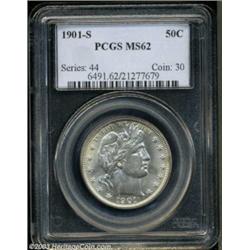 <table><tr><td><TABLE cellSpacing=0 cellPadding=0 width="100%" bgColor=#000000 border=0><TBODY> <TR><TD width="100%"><TABLE cellSpacing=1 cellPadding=3 width="100%" border=0><TBODY><TR><TD width="100%" bgColor=#79735c><FONT face=arial color=#ffffff size=3><B>Description</B> </FONT></TD></TR><TR><TD width="100%" bgColor=#ffffff><FONT face=arial size=2><B>1901-S 50C MS62 PCGS.</B></I> The San Francisco Mint's output of half dollars in 1901 amounted to just 847,044 pieces. Both sides of this conditionally scarce example are sharply struck. Untoned save for the lightest whispers of golden iridescence, the obverse is a little scuffy, yet free of sizeable distractions. Population: 5 in 62, 17 finer (8/03).<BR><I>From the Andy Geosits Collection of Barber Halves.</B></I> </FONT></TD></TR></TBODY></TABLE></TD></TR></TBODY></TABLE><BR><A name=PricesRealized></A><TABLE cellSpacing=0 cellPadding=0 width="100%" bgColor=#000000 border=0><TBODY><TR><TD width="100%"><TABLE cellSpacing=1 cellPadding=3 width="100%" border=0><TBODY><TR><TD width="100%" bgColor=#79735c><A name=PR><FONT face=arial color=#ffffff size=3><B>Previous Prices from Heritage Auctions</B> </FONT></A></TD></TR><TR><TD bgColor=#f6f6ed>No Prior Data Recorded </TD></TR><TR><TD bgColor=#ffffff><FONT face=arial size=1 ?>PLEASE NOTE: All prices realized reflect the final hammer price PLUS the buyer's premium in auctions that charge a buyer's premium. Each item has a notation at the top of the listing indicating whether that lot included a buyer's premium. Example: A item that sells with a final hammer price of $100 and a 20% buyer's premium will display with a price realized of $120. All information listed is intended to be as accurate as possible, but errors are possible. Please use this guide carefully and inform us of any inaccuracies. </FONT></TD></TR></TBODY></TABLE></TD></TR></TBODY></TABLE><BR><TABLE cellSpacing=0 cellPadding=0 width="100%" bgColor=#000000 border=0><TBODY><TR><TD width="100%"><TABLE cellSpacing=1 cellPadding=3 width="100%" border=0><TBODY><TR><TD width="100%" bgColor=#79735c colSpan=6><FONT face=arial color=#ffffff size=3><B>Price Guide*</B> </FONT></TD></TR><TR bgColor=#f6f6ed><TD align=middle><B>Grade</B> </TD><TD align=middle><B>Coin World<BR>(Trends)</B> </TD><TD align=middle><B>Numismedia<BR>Retail</B> </TD><TD align=middle><B>Numismedia<BR>Wholesale</B> </TD><TD align=middle><B>Coin<BR>Universe</B> </TD><TD align=middle><B>Heritage<BR>Value Index</B> </TD></TR><TR bgColor=#ffffff><TD align=middle>61</TD><TD align=right>---</TD><TD align=right>---</TD><TD align=right>$2,550.00</TD><TD align=right>---</TD><TD align=right>$1,701.11</TD></TR><TR style="FONT-WEIGHT: bold" bgColor=#cccfdd><TD align=middle>62</TD><TD align=right>$2,500.00</TD><TD align=right>---</TD><TD align=right>$3,125.00</TD><TD align=right>---</TD><TD align=right>$2,250.56</TD></TR><TR bgColor=#ffffff><TD align=middle>63</TD><TD align=right>$4,100.00</TD><TD align=right>---</TD><TD align=right>$4,250.00</TD><TD align=right>$4,550.00</TD><TD align=right>$3,068.33</TD></TR><TR bgColor=#ffffff><TD colSpan=6><FONT size=1>*All information listed is intended to be as accurate as possible, but errors are possible. No item may be returned or refused based on this information which is provided as a service to our customers. You should contact each pricing source directly to determine the accuracy of this information. </FONT></TD></TR></TBODY></TABLE></TD></TR></TBODY></TABLE><BR><TABLE cellSpacing=0 cellPadding=0 width="100%" bgColor=#000000 border=0><TBODY><TR><TD width="100%"><TABLE cellSpacing=1 cellPadding=3 width="100%" border=0><TBODY><TR><TD width="100%" bgColor=#79735c><FONT face=arial color=#ffffff size=3><B>Population Guide</B> </FONT></TD></TR><TR bgColor=#ffffff><TD align=middle><!-- Begin Output of Population Grid--><TABLE cellSpacing=0 cellPadding=0 width="100%" border=0><TBODY><TR><TD vAlign=center><TABLE cellSpacing=0 width="100%" border=1 cellsadding="3"><TBODY><TR><TD vAlign=center><TABLE cellSpacing=0 cellPadding=3 width="100%" border=1><TBODY><TR><TD vAlign=center align=middle bgColor=#f0f1e8 colSpan=2 <CENTER><FONT face=Arial size=2><B>PCGS Pop </B></FONT><CENTER></CENTER></TD><TD vAlign=center align=middle bgColor=#f0f1e8 colSpan=2><CENTER><FONT face=Arial size=2><B>NGC Pop</B></CENTER></FONT></TD></TR><TR><TD vAlign=center><FONT face=Arial size=2>(62)</FONT> </TD><TD vAlign=center align=right><FONT face=Arial size=2>6</FONT> </TD><TD vAlign=center><FONT face=Arial size=2>(62)</FONT> </TD><TD vAlign=center align=right><FONT face=Arial size=2>3</FONT> </TD></TR><TR><TD vAlign=center><FONT face=Arial size=2>(>62)</FONT> </TD><TD vAlign=center align=right><FONT face=Arial size=2>20</FONT> </TD><TD vAlign=center><FONT face=Arial size=2>(>62)</FONT> </TD><TD vAlign=center align=right><FONT face=Arial size=2>12</FONT> </TD></TR></TBODY></TABLE></TD></TR></TBODY></TABLE></TD></TR></TBODY></TABLE><!-- End Output of Population Grid--></TD></TR></TBODY></TABLE></TD></TR></TBODY></TABLE><BR><TABLE cellSpacing=0 cellPadding=0 width="100%" bgColor=#000000 border=0><TBODY><TR> Important notice: Heritage usually auctions material at the rate of 200-250 lots per hour. On some occasions eBay Live bid software or the Internet may not be able to keep up with the pace of the auction. We recommend placing a realistic absentee bid now as insurance to avoid disappointment. Occasionally the auctioneer may eliminate or reject an eBay Live bid, and the auctioneer may also reopen a lot after the close of the eBay live bidding (usually because we missed an audience bid), and may reject your bid even if it shows you as the winning bidder. By bidding via eBay Live, you agree that Heritage may award the lot to another bidder at its sole discretion under the circumstances described above or any other reasonable circumstances. Also please note that all Heritage lots purchased through eBay Live carry a 20% Buyer's Premium. Please make sure you read the Terms and Con