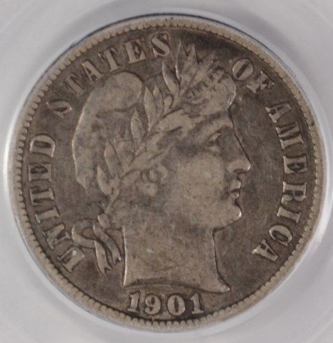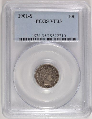 1901-S BARBER DIME, PCGS VF-35 ( SURE LOOKS XF ) RARE!