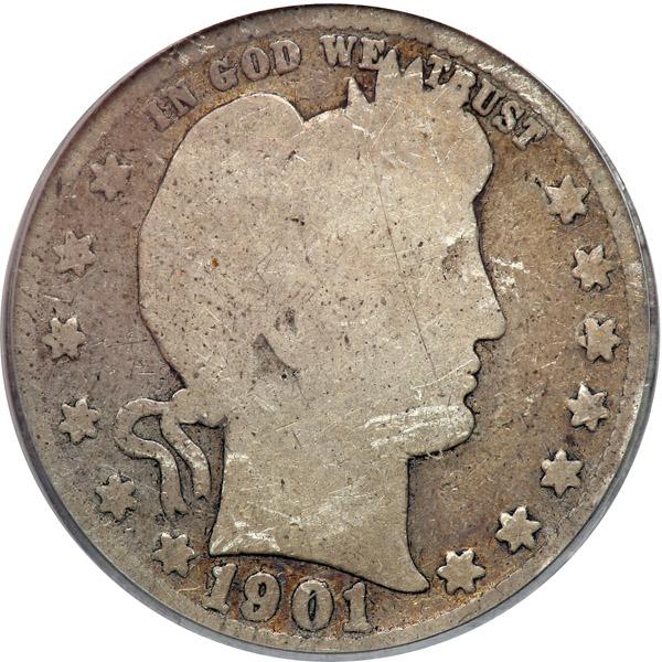 1901-S. PCGS graded About Good-3. Lightly toned and evenly worn with pleasing surfaces, full stars, date and clear mintmark. Popular Key Date (PCGS # 5630) .