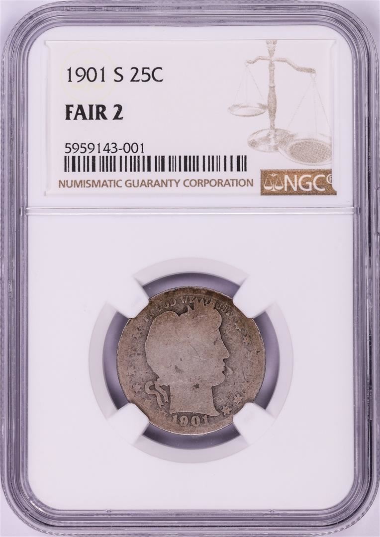 One 1901-S Barber Quarter Coin NGC Fair 2. NGC Certified.