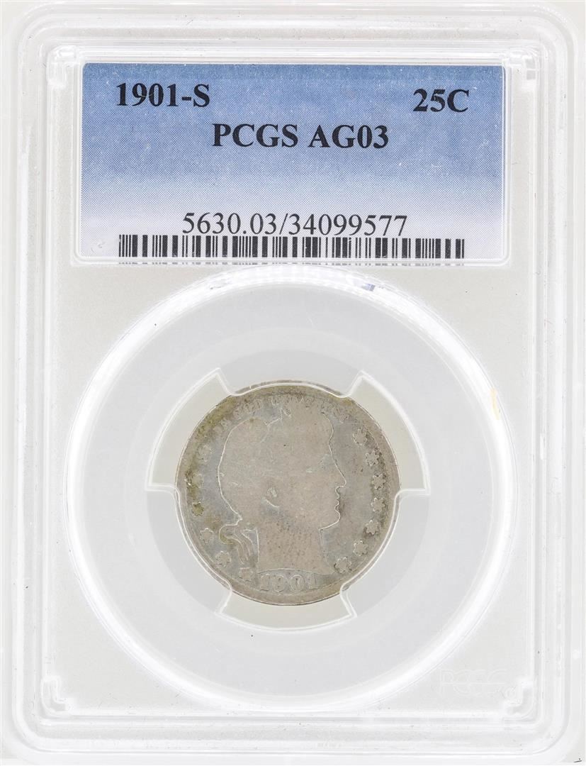 One 1901-S Barber Quarter Coin PCGS AG03. PCGS Graded.