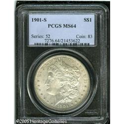 <B>1901-S<img border='0' src='http://www.heritagecoins.com/images/star.gif' width=10 height=10>$1 MS64 PCGS.</B></I> Softly struck over the centers, with a satiny, very slightly toned overall appearance, and a few minor marks and superficial luster grazes. Lot:10590