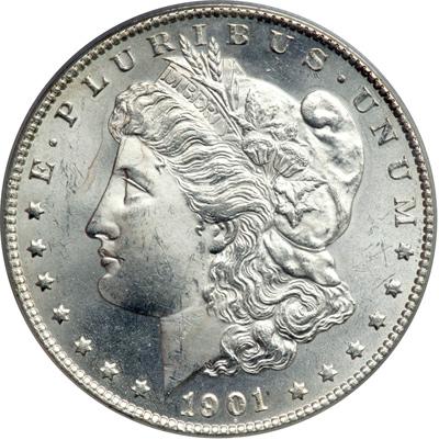 1901-S Morgan Dollar. PCGS graded MS-64. Liberty's portrait is quite frosty. Untoned. Considering the devices next and putting the results in a few words we can say it was struck with systematic exactness throughout and is typical of the high standards sought by the mint at San Francisco at the turn of the 20th century. As it stands now and so will in all probability stand for generations to come, a coin for the Morgan dollar connoisseur (PCGS # 7276) .