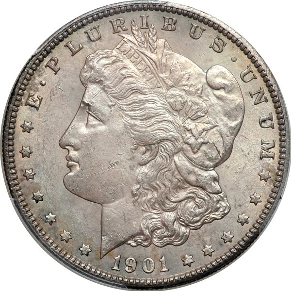 1901-S Morgan Dollar. PCGS graded MS-62. Evenly toned on both sides and a lustrous, well made example (PCGS # 7276) .