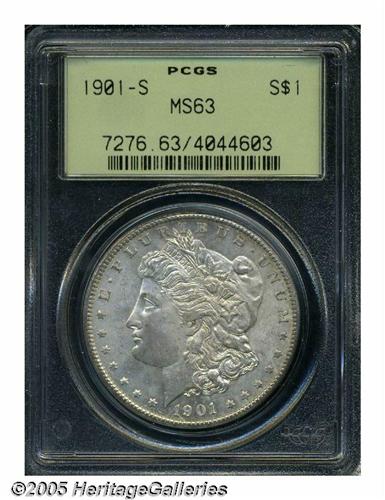 <B>1901-S<S$1> MS63 PCGS.</B></I> Fully lustrous and partially brilliant with blushes of rose and gold toning on both surfaces. Nice eye appeal for the grade.<BR><I>From The Milwaukee Shore Collection.</B></I>
