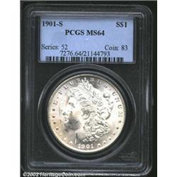 1901-S S$1 MS64 PCGS. A lustrous near-Gem with a good strike and a few hints of tan patina. The uppe
