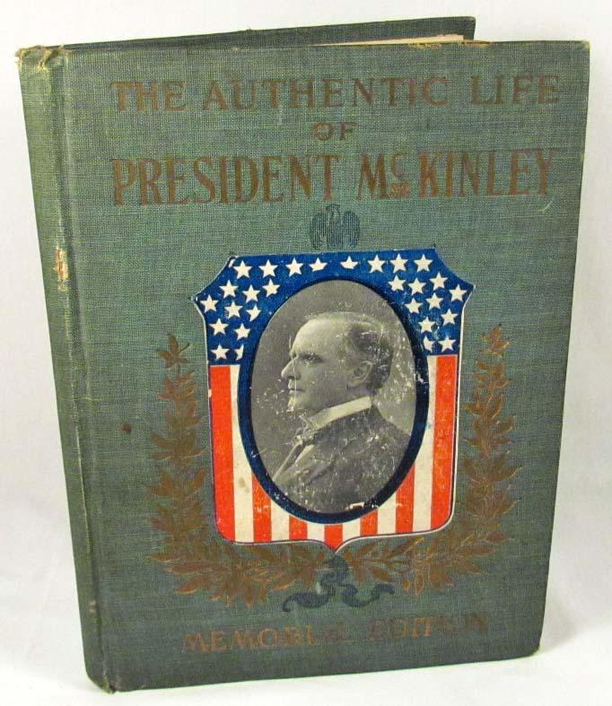 1901 SALESMAN'S SAMPLE "WILLIAM MCKINLEY MEMORIAL" HARDCOVER BOOK - "The Authentic Life of William McKinley Our Third Martyr President". Includes Spine of Book Sample inside and Order Pages in Back.