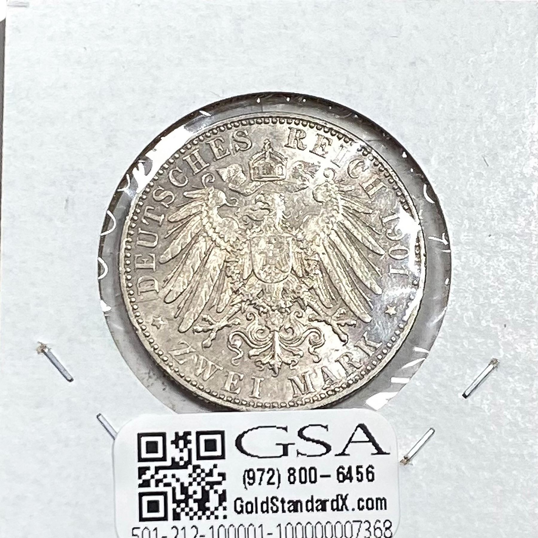 1901 Silver Prussia 2 Mark AU