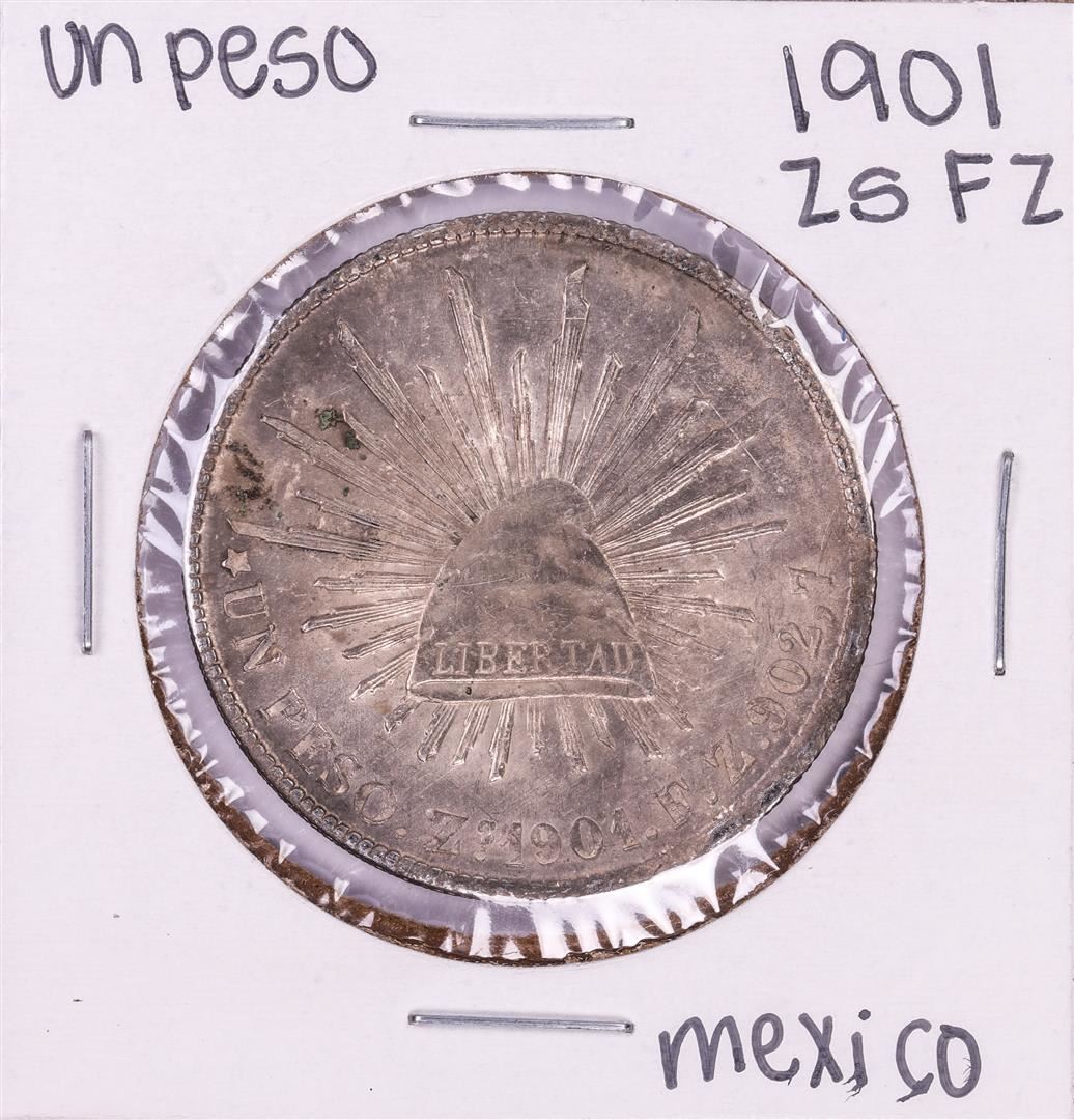 One 1901 Zs FZ Mexico Un Peso Silver Coin.