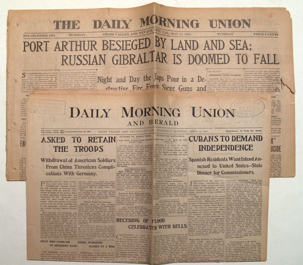The Daily Morning Union, May 17, 1904. Anti-Hearst campaign and Port Arthur besieged. April 24, 1901. American soldiers withdrawal from China and Negro hung by mob.