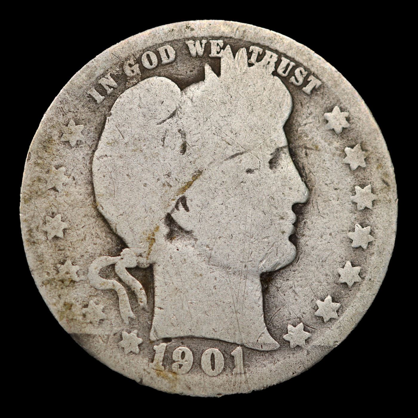 1901-o Barber Quarter 25c Grades g+.