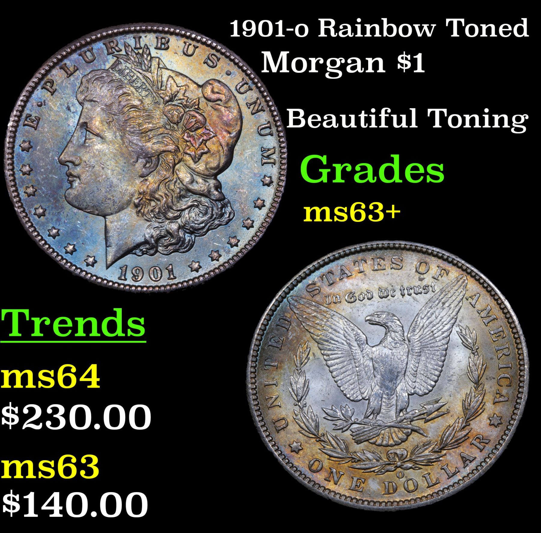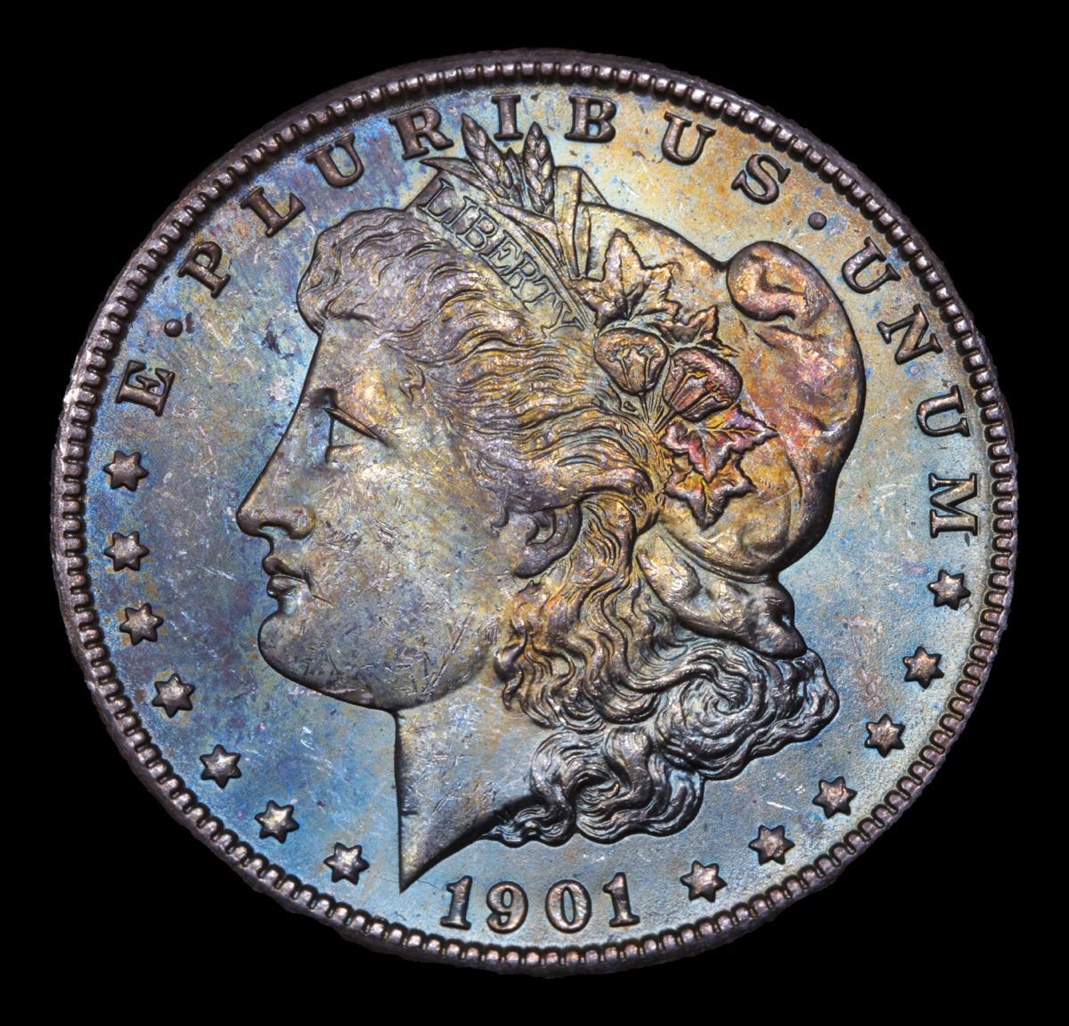 1901-o Rainbow Toned Beautiful Toning . Morgan Dollar $1 Grades Select+ Unc.