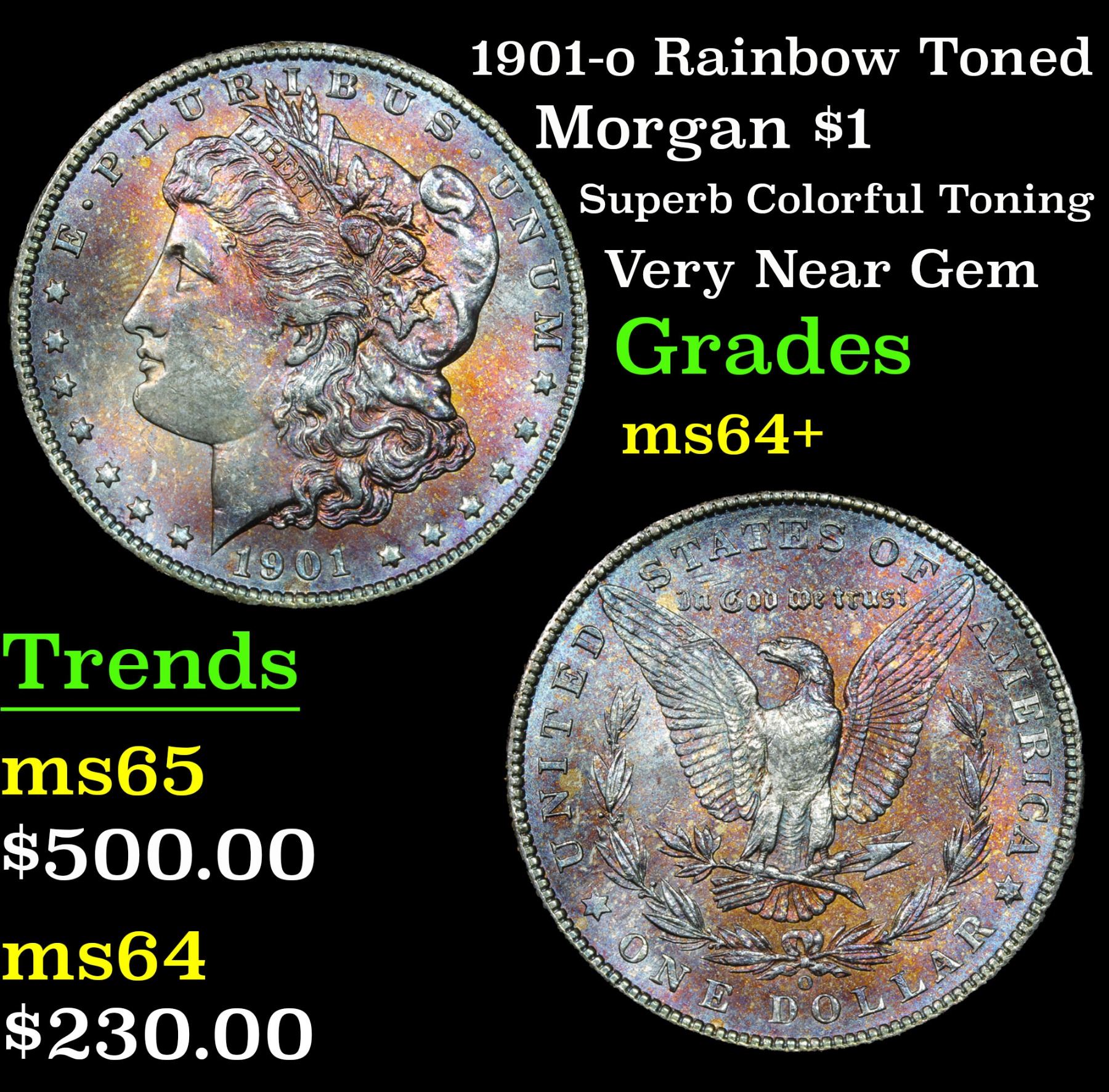 1901-o Rainbow Toned Superb Colorful Toning Very Near Gem Morgan Dollar $1 Grades Choice+ Unc. A Corey's Pick, Bid to Win, Don't let it get Away Coin