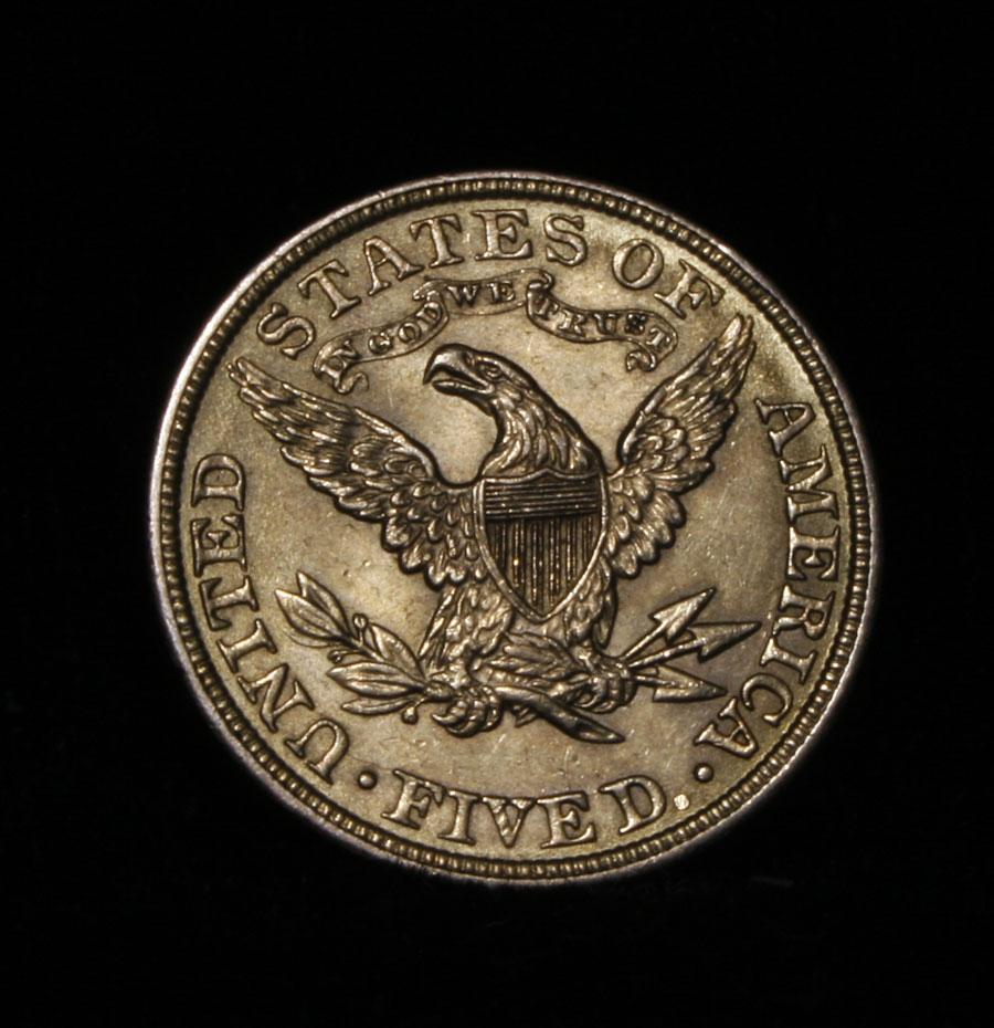 Beautiful Turn of the century example of the Liberty $5 gold with nice satin luster. Coin World's Coin Values lists ms63 at $1300 and ms64 at $1850. The Wholesale Greysheet lists ms63 at $1010 and ms64 at $1400. Estimated Value $1200