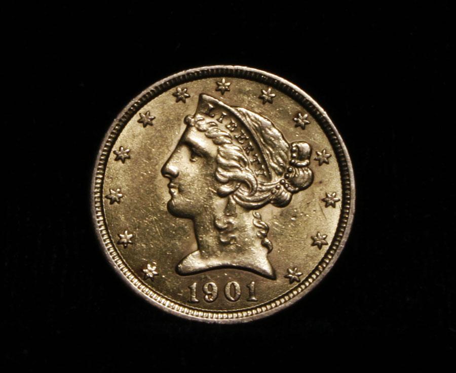 Beautiful Turn of the century example of the Liberty $5 gold with nice satin luster. Coin World's Coin Values lists ms63 at $1300 and ms64 at $1850. The Wholesale Greysheet lists ms63 at $1010 and ms64 at $1400. Estimated Value $1200