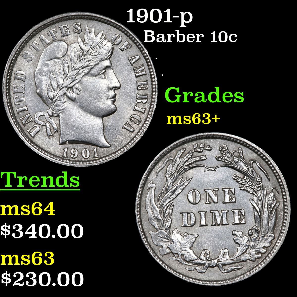 1901-p . . Barber Dime 10c Grades Select+ Unc.