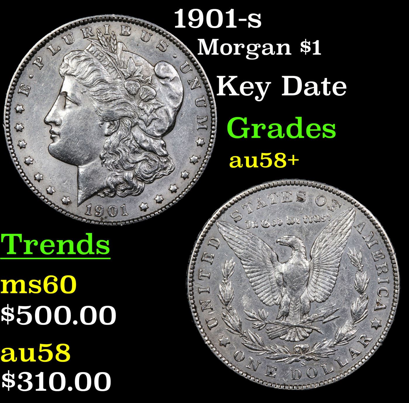 1901-s Morgan Dollar $1 Grades Choice AU/BU Slider+.