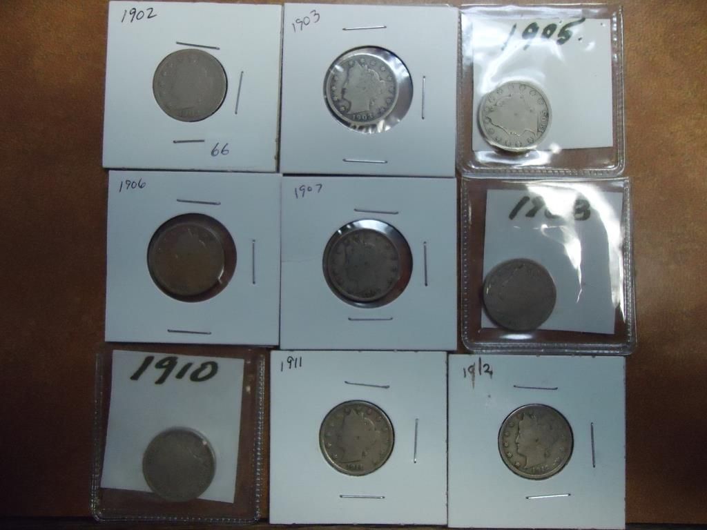 1902,03,05,06,07,08,10,11 & 12 LIBERTY "V" NICKELS