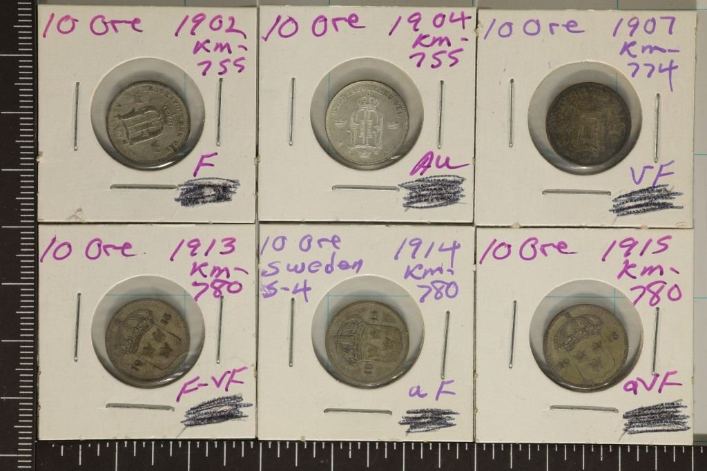 1902, 04, 07, 13, 14 & 1915 SWEDEN SILVER 10 ORE