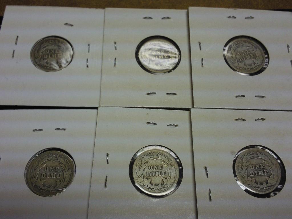 1902, 05, 06, 07, 08, 09 BARBER DIMES 6 COINS