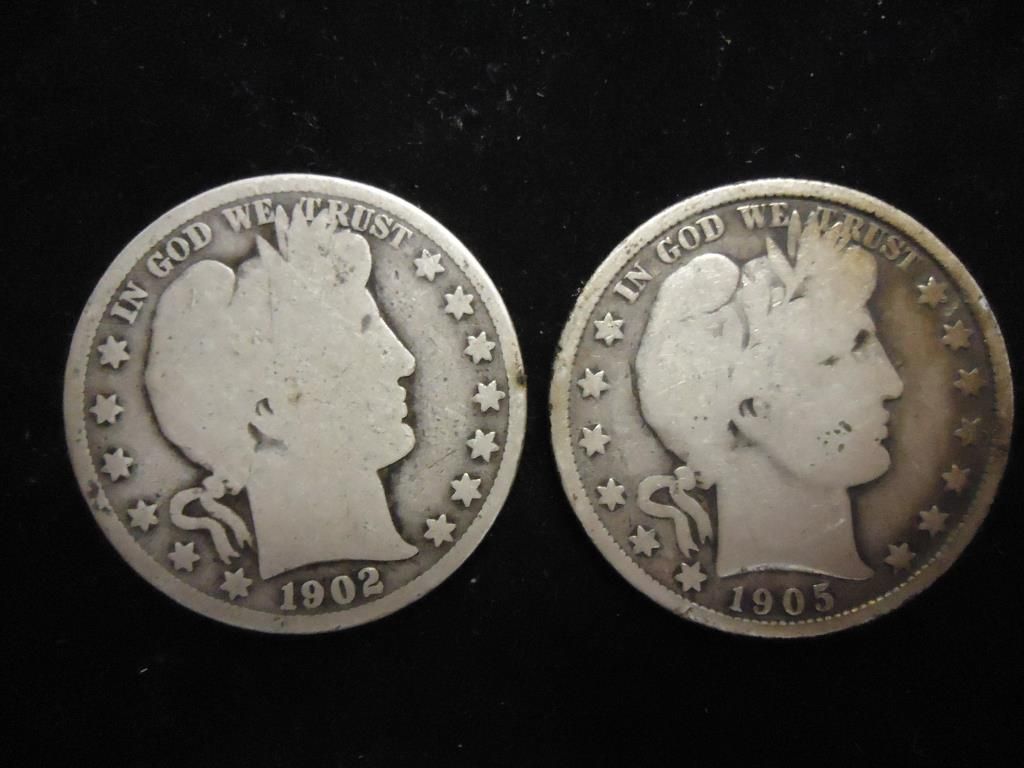 1902 & 05 BARBER HALF DOLLARS