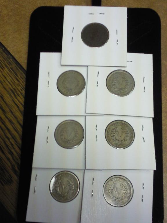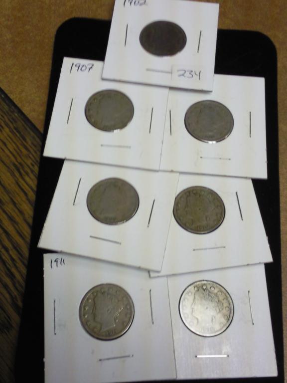 1902, 07, 08, 09, 10, 11 And 12 "V" Nickels All VG